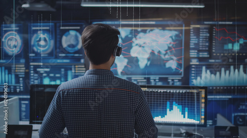 businessman or data analysis working with business data statistics using virtual reality technology, business growth performance digital data analysis