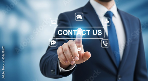 Businessman Pressing Contact Us Button Digital Interface