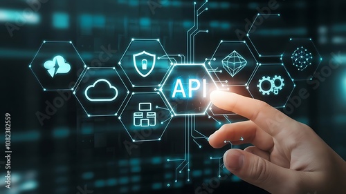 businessman pressing virtual button API, application programming interface. cloud computing concept, cloud technology, Saas, Paas, Iaas. AWS Services