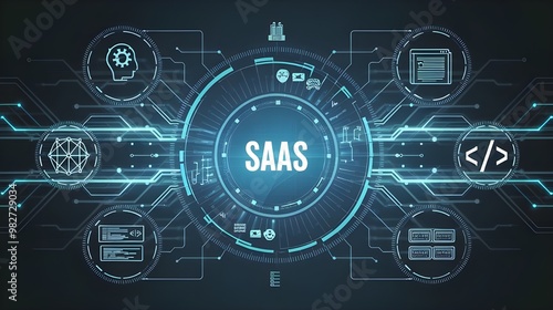 businessman pressing virtual button SAAS, Software as a service. cloud computing concept, cloud technology, Saas, Paas, Iaas. AWS Services