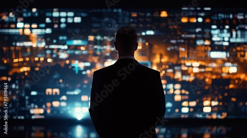 businessman touch and analysis virtual , screen monitor cart bar suitable for digital and print
