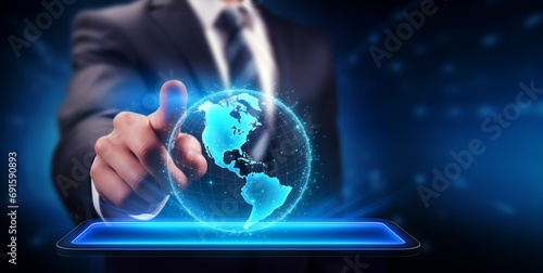 Businessman touching virtual Earth globe