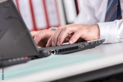 Businessman typing on laptop computer