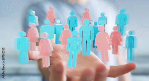 Businessman using 3D rendering group of people