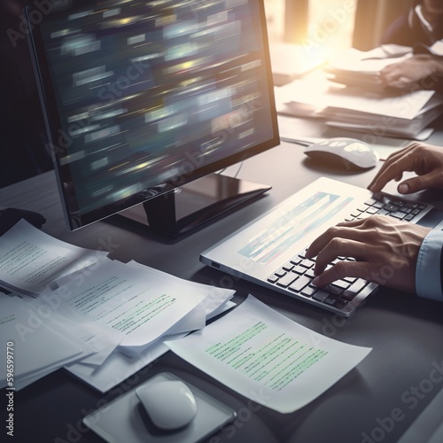 businessman using a computer to manage documents online document database and digital file storage system or save the software database technology file access access to document. generative ai