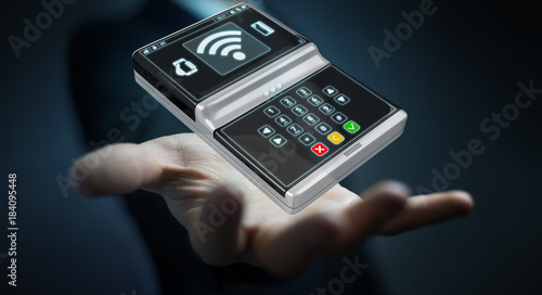 Businessman using contactless terminal payment 3D rendering