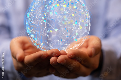 Businessman using data network with his fingers.