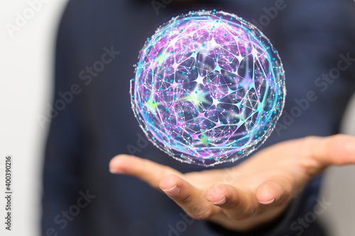 Businessman using data network with his fingers.