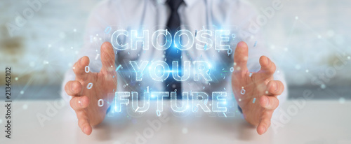 Businessman using future text interface 3D rendering