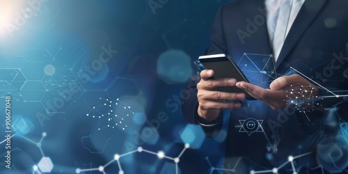 Businessman Using Smartphone with Technology Network Graphics