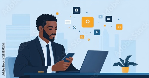 Businessman Using Technology for Digital Communication and Networking at Workplace