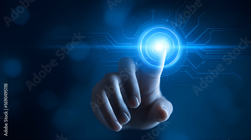 Businessman using virtual touch screen in futuristic interface