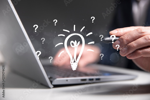 businessman with a laptop computer with a light bulb