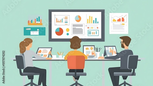 Businesspeople Analyzing Data and Charts in an Office Setting