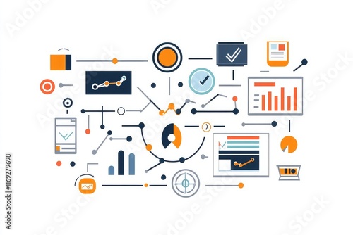 Business-to-business strategy planning featuring a digital interface with interconnected corporate icons symbolizing partnerships and goals