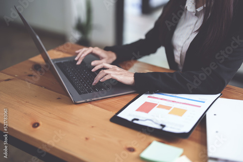 Businesswomen use computers to analyze work
