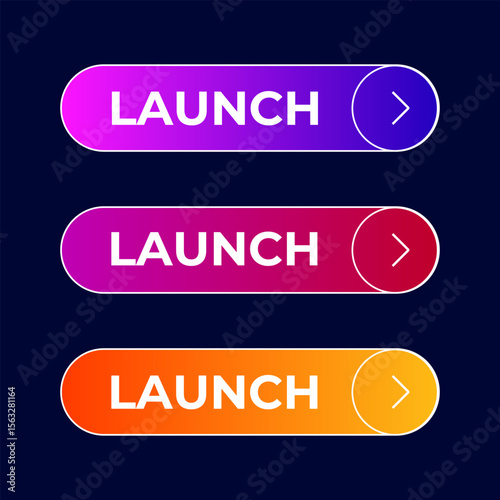 button Launch gradient set vector