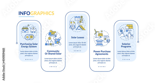 Buying solar panels vector infographic template. Rooftop system presentation design elements. Data visualization with 5 steps. Process timeline chart. Workflow layout with linear icons
