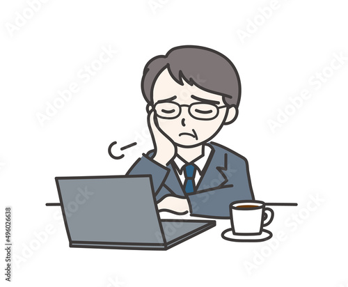 パソコンを前にしてため息をついている年配の男性C【ノートパソコン】