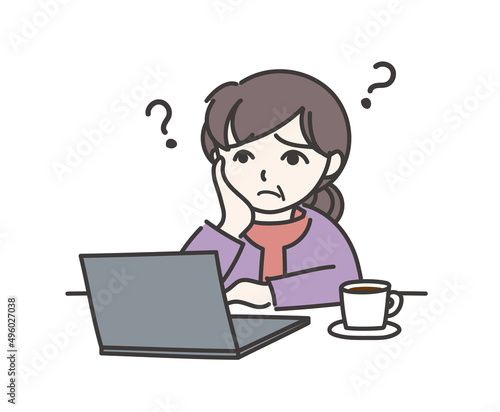パソコンを前にして悩んでいる年配の女性C【ノートパソコン】