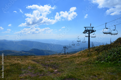 Cable car on mountain landscape