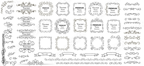 Calligraphic design elements . Decorative swirls or scrolls, vintage frames , flourishes, labels and dividers. Retro vector illustration