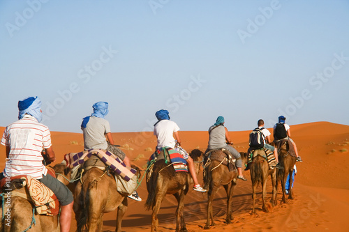 Camel caravan going through the sand dunes