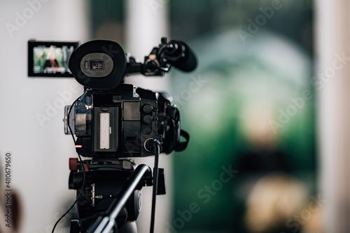 Camera Recording at a Press Conference.
