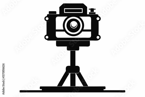 camera stand silhouette line art vector illustration