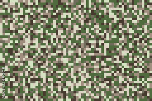 Camouflage repeating green pixel elements. Seamless texture vector illustration, background.