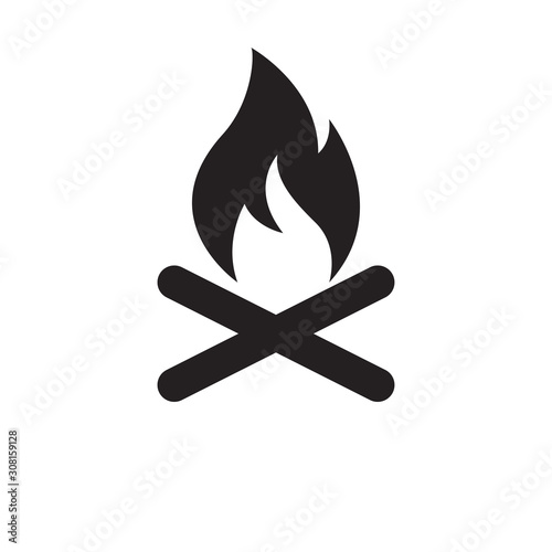 Campfire with firewood icon isolated on white background.