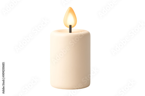 Candle Flame PNG Beige Pillar Light with Bright Center Glow Flame