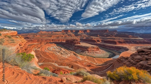 Canyon Overlook with River and Dramatic Clouds
