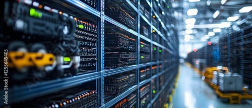 Capacity Shipping System, Vertical Racks of Industrial Equipment in Bright Warehouse Setting with Dramatic Depth and Selective Focus