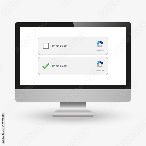 Captcha, I am not a robot. Laptop screen. Vector Illustration
