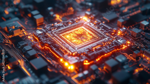 captivating view of quantum computing chip, showcasing intricate circuitry and glowing elements