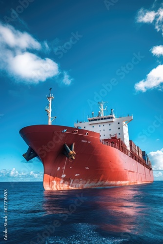 Cargo ship sailing in calm sea waters, created using generative ai technology