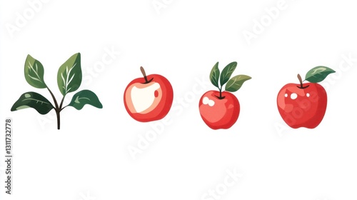 Cartoon apples with leaves, fruit illustration, healthy eating