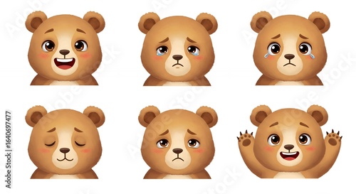 Cartoon bear faces set with different emotions