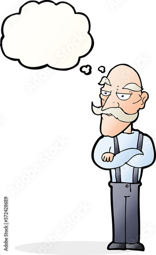 cartoon bored old man with thought bubble