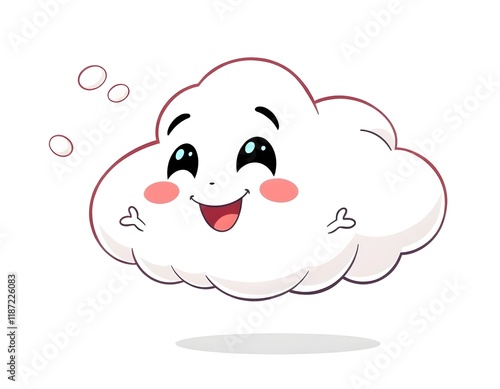 Cartoon Cloud Character Blowing Gentle Breeze with Joyful Expression