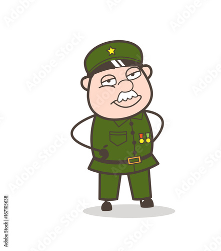 Cartoon Cunning Sergeant Smiling Face Vector Illustration