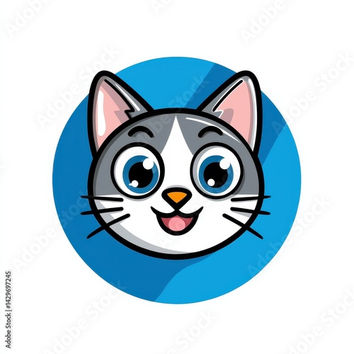 Cartoon illustration of a cat's face with large blue eyes and a white patch on its forehead