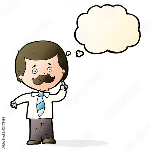 cartoon newsreader man with idea with thought bubble