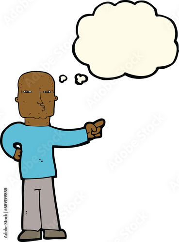 cartoon pointing man with thought bubble