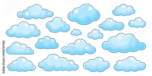 Cartoon style clouds set on white background
