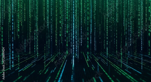 Cascading Code Digital Rain A Cyberpunk Aesthetic Data Stream Visualization with Binary Numbers in a Dark Teal Color Scheme