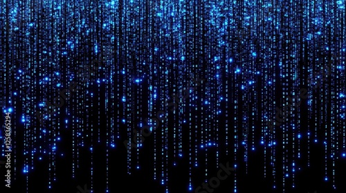 Cascading digital rain effect with glowing binary code in cyan hue