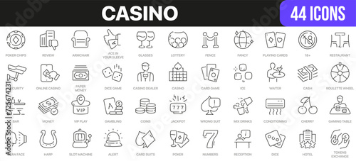 Casino line icons collection. UI icon set in a flat design. Excellent signed icon collection. Thin outline icons pack. Vector illustration EPS10