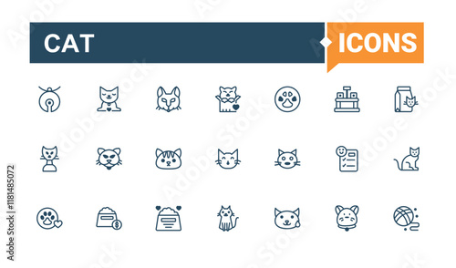 Cat icons set. Contains such icons as hand, bone, domestic, art, animal, pack and more. Perfect for logos and infographics. Outline and solid pictogram.